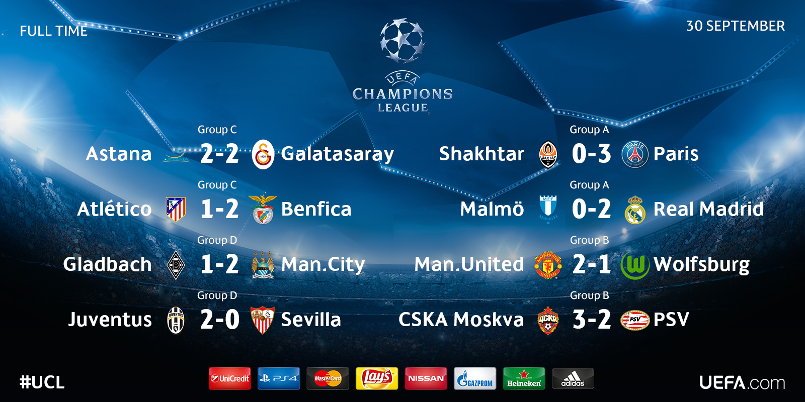 Miercuri, 30 septembrie, s-au disputat alte opt meciuri în a doua etapă a fazei grupelor Ligii Campionilor UEFA, ediția 2015/16.