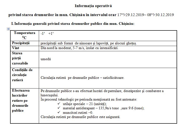 Declarația a fost făcută în cadrul ședinței săptămânale a primăriei. Potrivit pretorilor sectoarelor din Chișinău, în prezent circulația rutieră pe drumurile publice este satisfăcătoare.