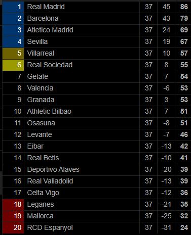 Real Madrid a câștigat La Liga cu 86 de puncte cu o etapă înainte de sfârșitul campionatului. „Galacticii” sunt la șapte puncte în fața FC Barcelona. Până acum, au reușit să înscrie 68 de goluri și au încasat doar 23.