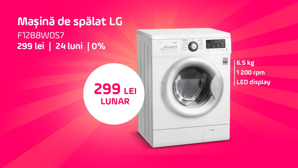 # Mașină de spălat rufe LG de 6,5 kg – cu 299 lei pe lună în credit 0 %;