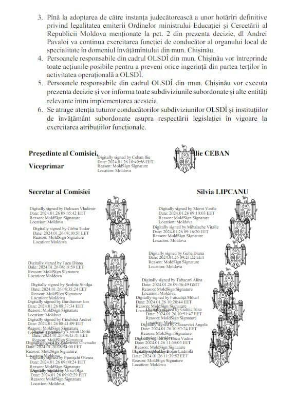 Potrivit deciziei CSE, Pavaloi va rămâne în funcție până la aprobarea instanței de judecată a unor hotărâri definitive privind legalitatea emiterii Ordinului Ministerului Educației și Cercetării (MEC).