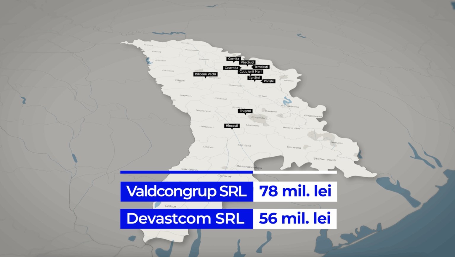 Pe lângă proiectele din Trușeni și Bilicenii Vechi, în programul „Satul European 2022”, Valdcongrup SRL a mai realizat lucrări în alte opt localități, majoritatea în nordul țării, în sate și comune din raioanele: Florești, Șoldănești și Rezina, dar și în centrul țării, la Hâncești. Și în cazul dat vorbim, în mare parte, de lucrări de apă și canalizare. Valoarea totală a contractelor – 78 de milioane de lei. Astfel, firma ocupă poziția a II-a în topul companiilor care au încasat cei mai mulți bani în programul „Satul european 2022”.