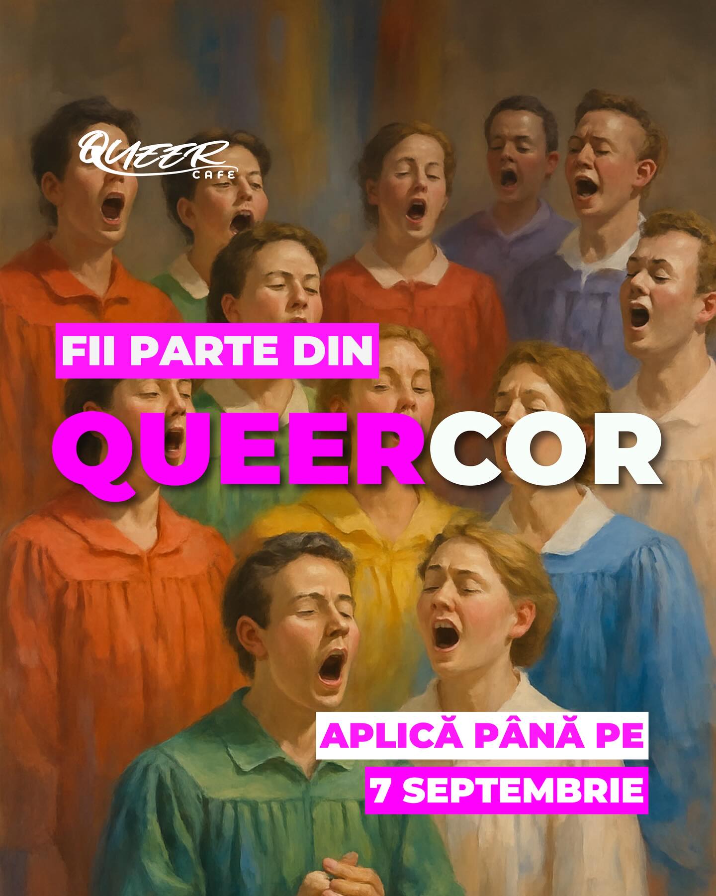Îți place să cânți? Queer Café te invită să participi la crearea Corului Queer din Moldova. Organizatorii caută persoane din comunitatea LGBTQ+ sau aliați/aliate care doresc să-și dezvolte abilitățile muzicale și să contribuie la consolidarea comunității prin participarea la evenimente.