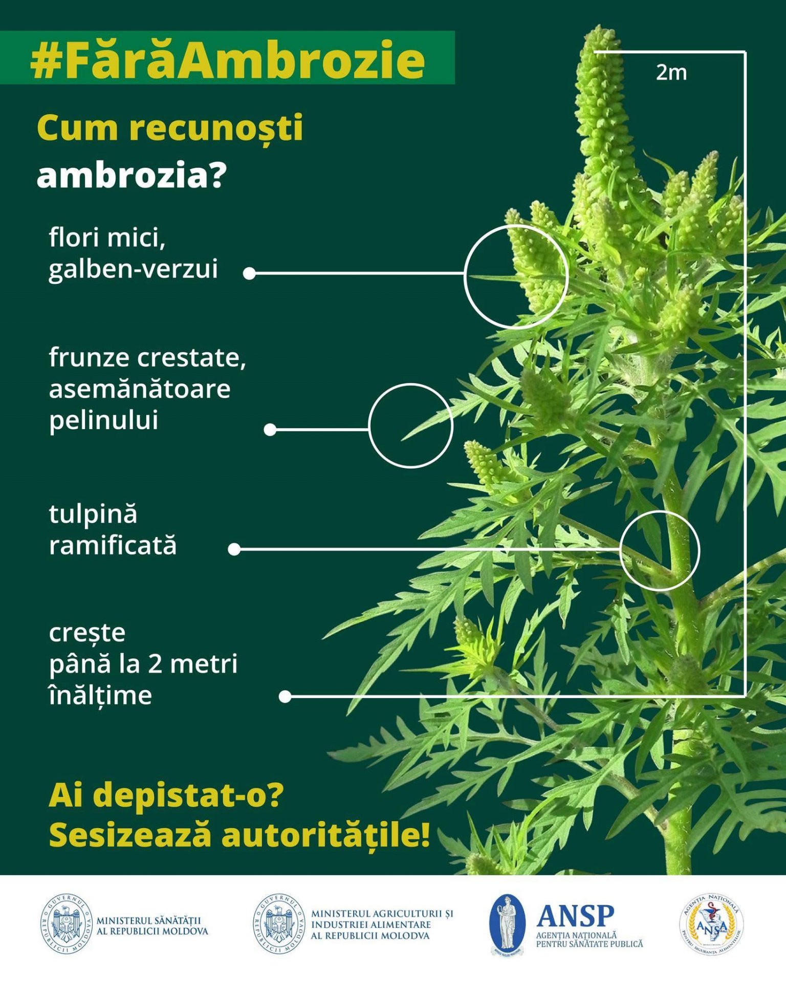 # Când vezi ambrozie în spații publice, anunță autorităților locale (primăria). Aceste sunt responsabile să elimine planta înainte de răspândirea polenului.