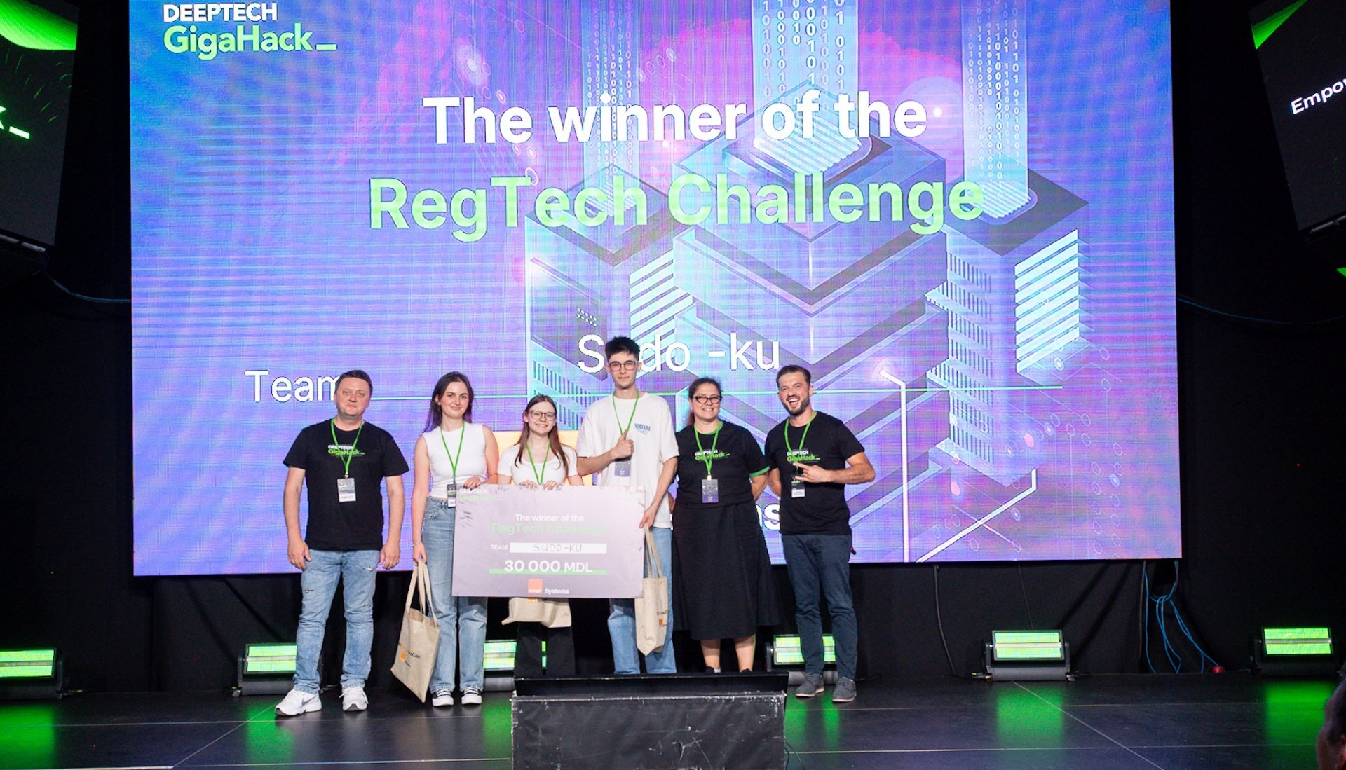 Peste 300 de participanți pasionați de tehnologie, cercetători și programatori au transformat Chișinăul într-un veritabil laborator de inovație, în cadrul celei de-a treia ediții a DeepTech GigaHack. Între 12 și 14 septembrie, la Tekwill, tinerii curioși de inovație au lucrat cot la cot cu 27 de mentori internaționali, opt team coaches și un juriu format din 26 de experți, răspunzând provocărilor din domenii precum Inteligența Artificială, FinTech, HealthTech, EnergyTech, AgriTech, Cybersecurity și EduTech, și au transformat idei curajoase în prototipuri funcționale, într-un ritm intens de 48 de ore.