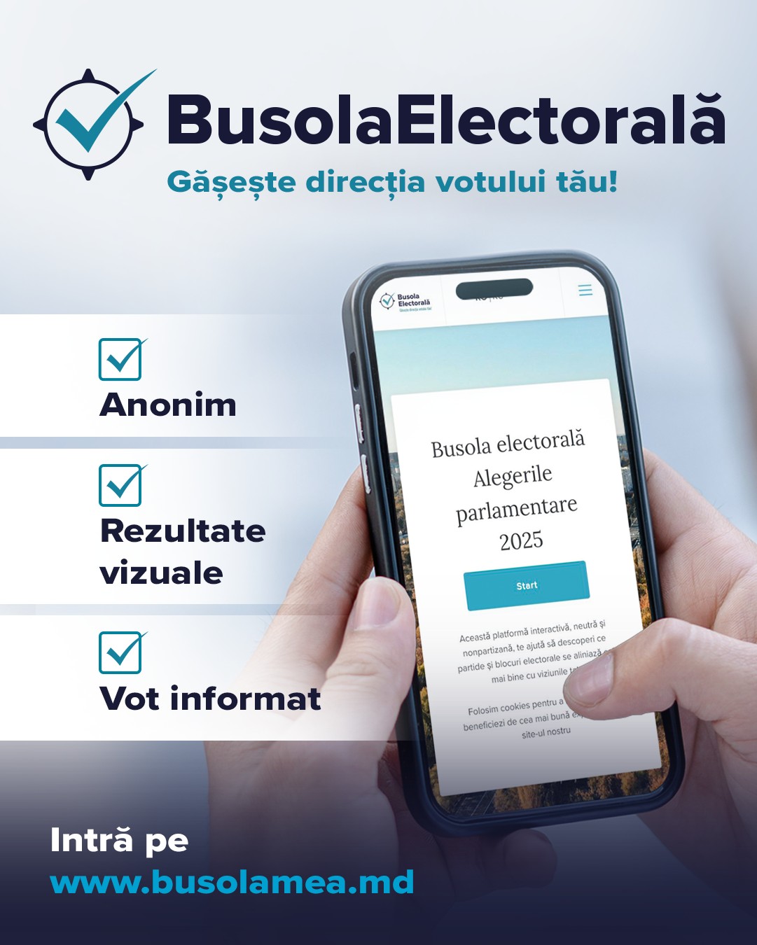 În plină campanie electorală, alegătorii din Republica Moldova au la dispoziție un nou instrument digital menit să îi sprijine să își clarifice opțiunile politice înainte de scrutinul din 28 septembrie. „Busola Electorală” este o platformă neutră, imparțială și ușor de utilizat, care vine să aducă mai multă transparență și responsabilitate în procesul electoral.