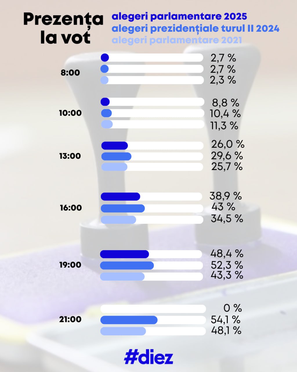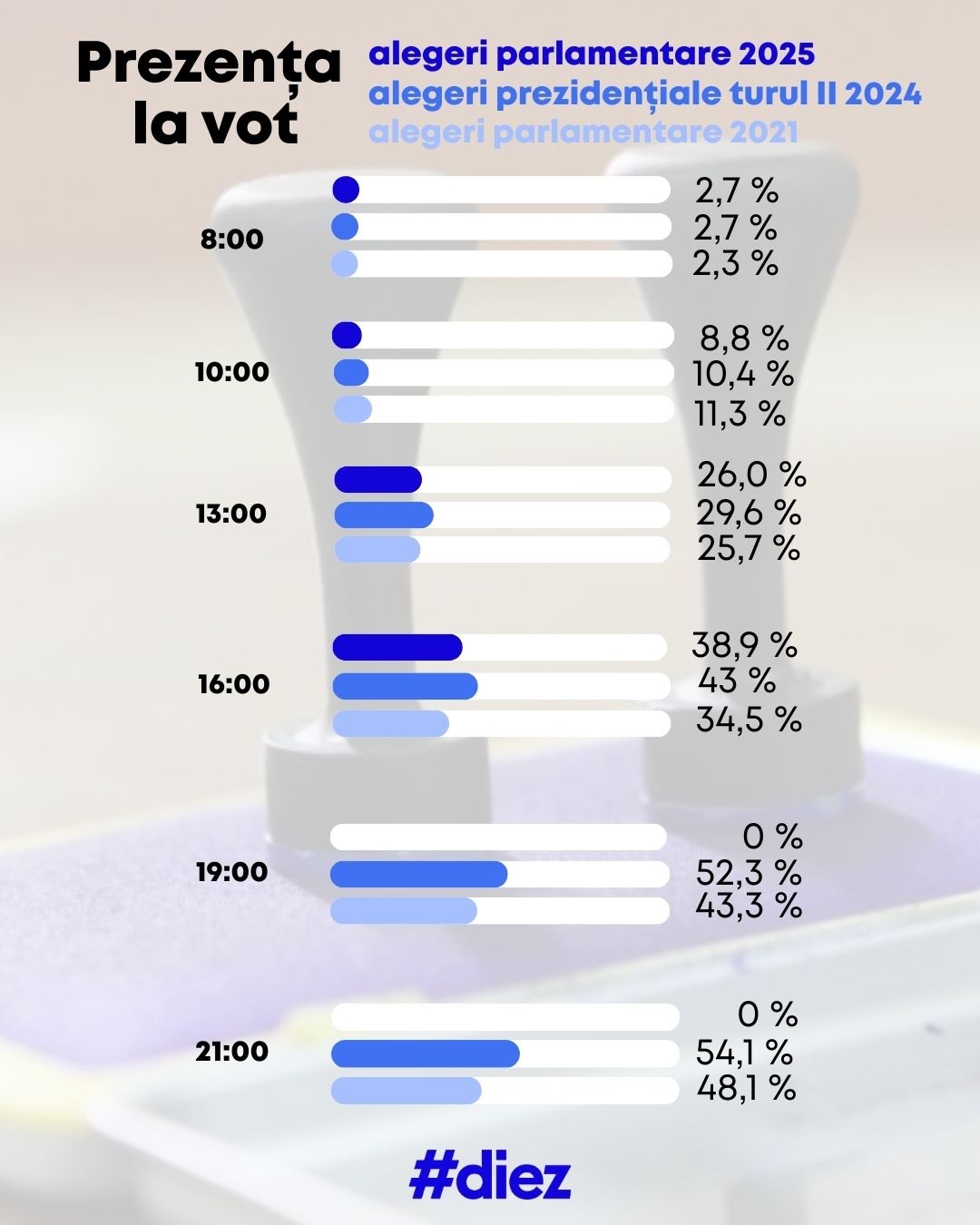 Pe parcursul zilei de astăzi, echipa #diez va oferi informații la minut despre prezența la vot, cele mai importante incidente de la secțiile de votare, dar și alte lucruri curioase despre desfășurarea alegerilor parlamentare 2025.