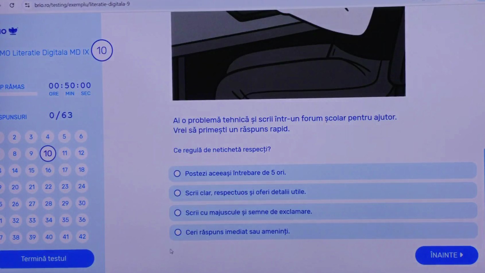 Testarea se va desfășura exclusiv pe platforma specializată md.brio.ro, care poate fi accesată de pe orice dispozitiv electronic: calculator, laptop, tabletă sau smartphone.