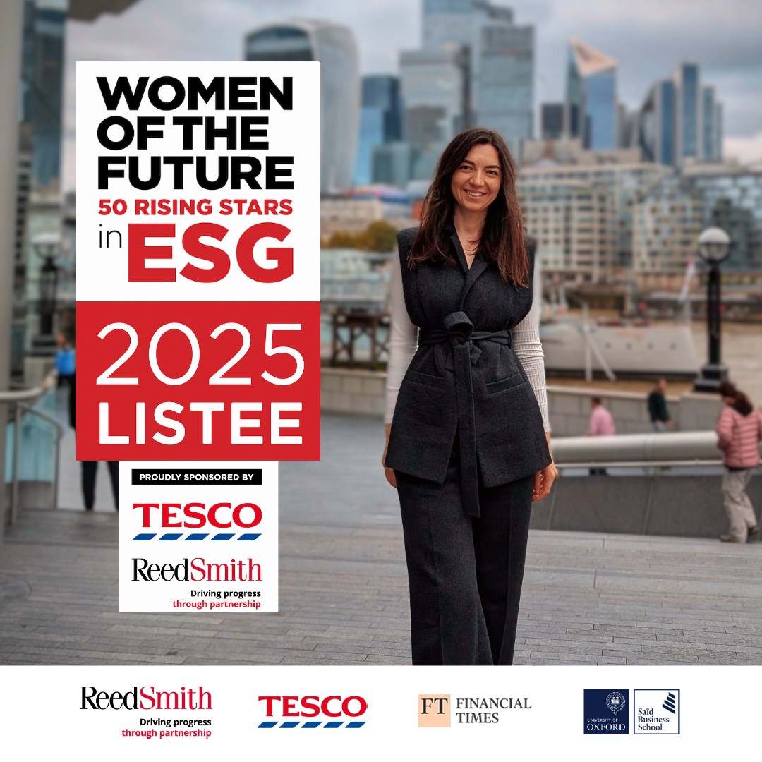 Women of the Future 50 Rising Stars in ESG celebreze femeile talentate, deschizătoare de drumuri și modele de urmat, cu vârsta de până la 35 de ani, din întreaga lume, care transformă peisajul global al impactului în domeniile Mediu, Social și Guvernanță (ESG).