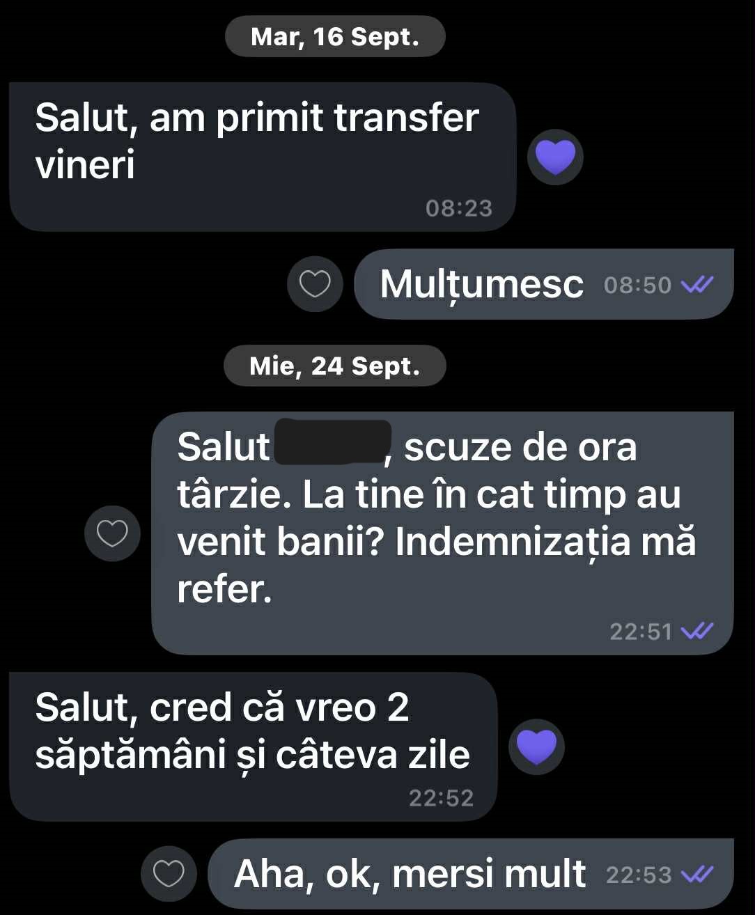 Tânărul menționează că responsabilii de la DGETS l-au anunțat săptămâna trecută că tranșa va fi transmisă până în data de 17 octombrie. Potrivit lui Sergiu, banii nu au fost transferați.