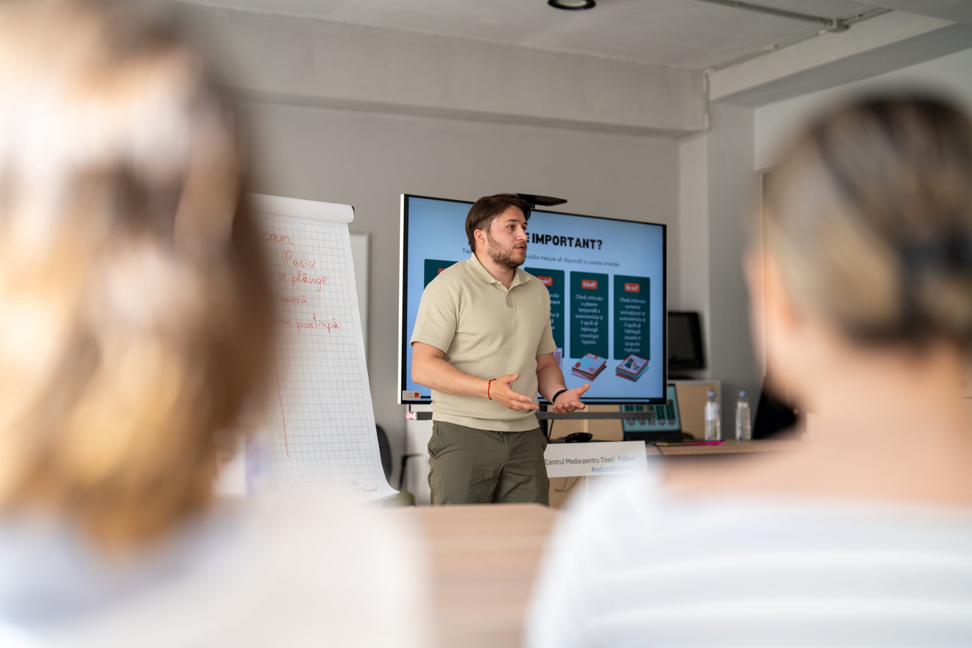 „În primele zile, tinerii participă la instruiri oferite atât de echipa Centrului Media, cât și de diferiți actori din spațiul informațional. Fie că este vorba despre jurnaliști, prezentatori, fie de creatori de conținut sau influenceri, participanții au oportunitatea să învețe câte ceva de la oamenii pe care îi urmăresc sau pe care îi consideră un exemplu. Apoi urmează partea practică, în care aplică abilitățile dobândite și creează, individual sau în echipă, diverse produse media. Ulterior, dacă sunt interesați, avem și programe de stagiu.”