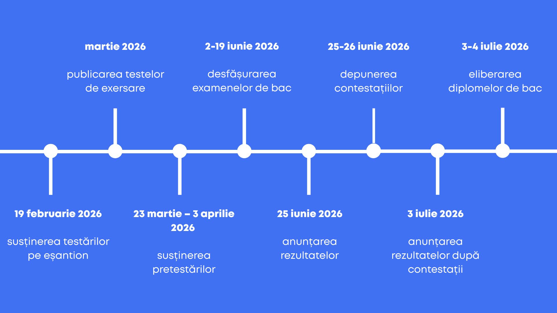 | 28 iulie 2026 | Transmiterea testelor și afișarea borderourilor cu rezultatele, obținute în urma examinării contestațiilor din sesiunea suplimentară, la centrele republicane de bacalaureat. |