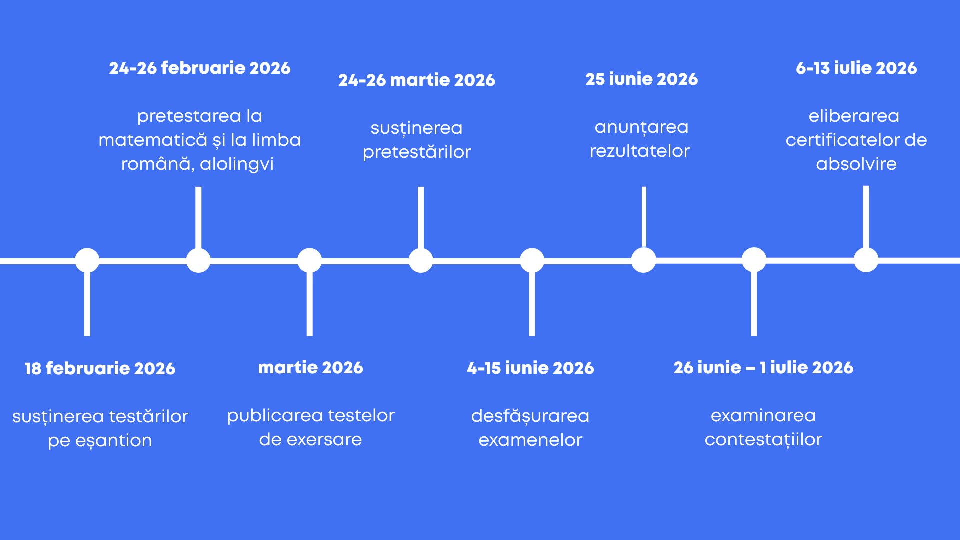 | 4-15 iunie 2026 | Desfășurarea examenelor naționale de absolvire a clasei a IX-a. |