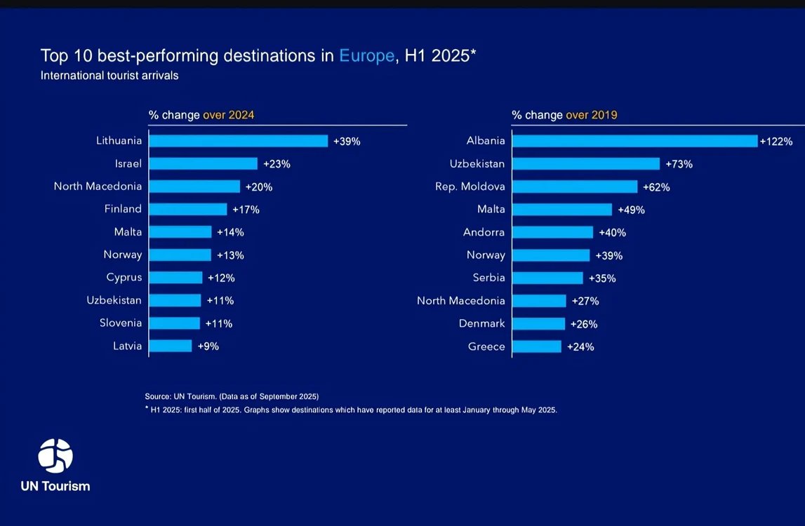 Clasamentul este condus de Albania și Uzbekistan, urmate de Republica Moldova, Malta, Andorra, Norvegia, Serbia, Macedonia de Nord, Danemarca și Grecia. Conform datelor Biroului Național de Statistică, în perioada ianuarie-iunie 2025, peste 37.000 de străini au vizitat Republica Moldova prin intermediul agențiilor de turism, cu 44,8 % mai mulți față de aceeași perioadă a anului precedent.