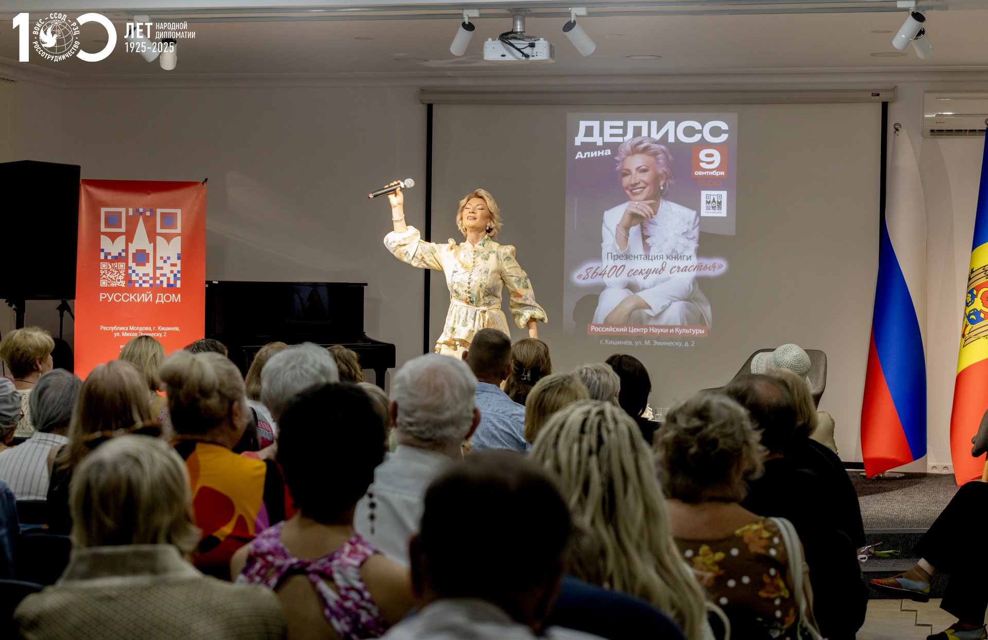 Pe 12 septembrie la Casa Rusă a avut loc o „seară creativă” dedicată lui Alina Deliss, numele său adevărat fiind Alina Ghilitiuc. Aceasta a fost prezentată drept poetă, prezentatoare TV, membră a Uniunii Muzicienilor și Artistă Emerită a Republicii Moldova care s-a realizat în Federația Rusă.