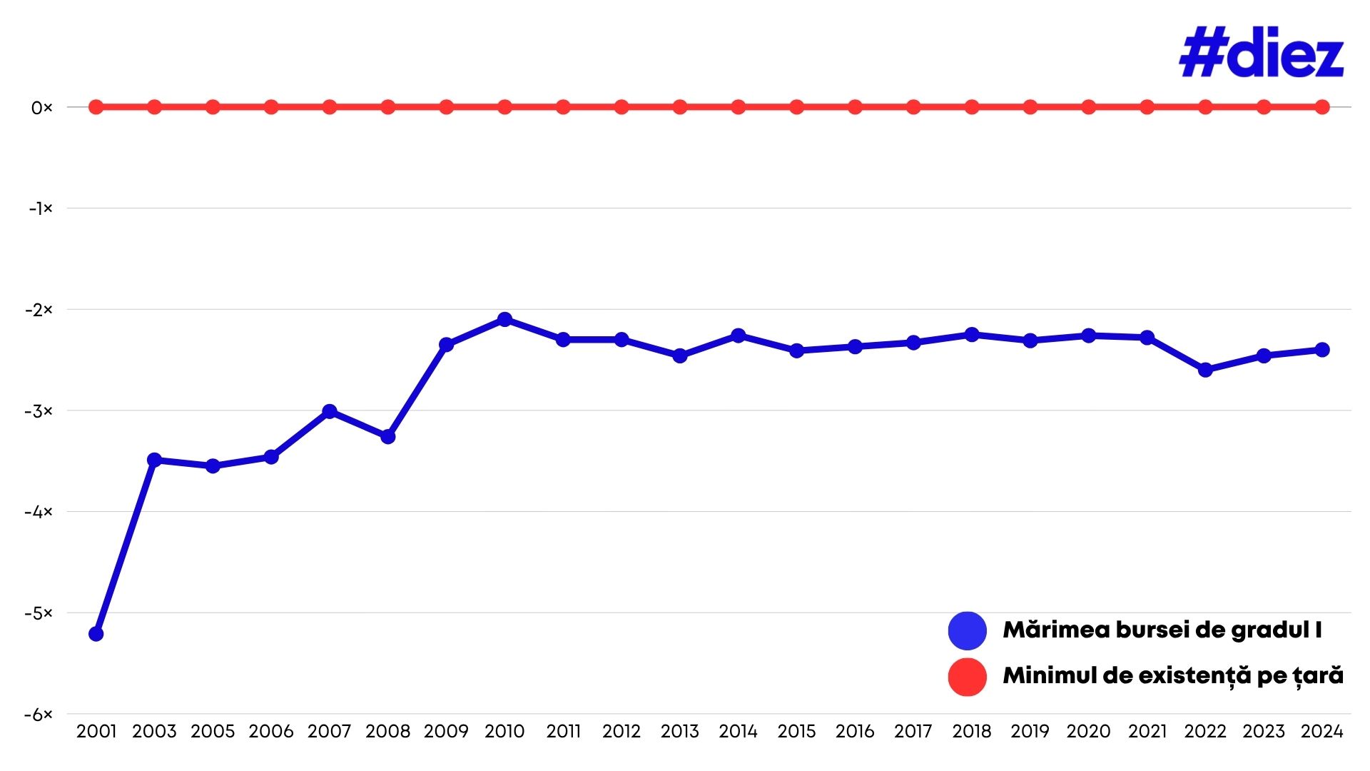 Aceasta înseamnă că bursa nu acoperă nici jumătatea din minimul necesar pentru un trai considerat minim pentru supraviețuire.