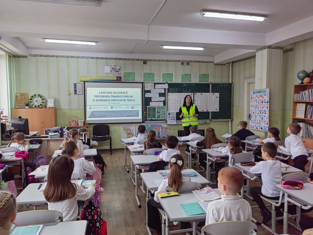 Exerciții practice au realizat și elevii claselor primare de la Liceul Teoretic „Mihail Sadoveanu” din orașul Hîncești, care au făcut cunoștință cu principalele indicatoare rutiere și au participat la activități interactive privind modul corect de traversare a străzii și comportamentul responsabil al pietonilor. Activitatea a avut rolul de a consolida cunoștințele teoretice și de a forma deprinderi practice sigure încă de la vârste fragede.