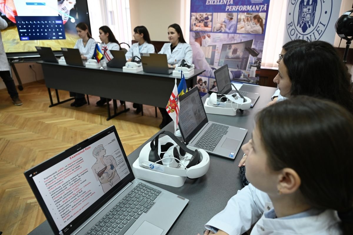 Inaugurarea celor două săli de medicină virtuală a avut loc la Catedra de patologie a Universității, pe data de 28 noiembrie 2025, la care au participat reprezentantele DRRM – Ana Maria Dumitroiu-Sofâlcă, șef serviciu, și Ioana Necula, consilier, prim-prorectorul Olga Cernețchi, prorector pentru activitate didactică și management academic, membri ai administrației Universității, șefi de catedre și de studii, cadre didactice, studenți și medici rezidenți.