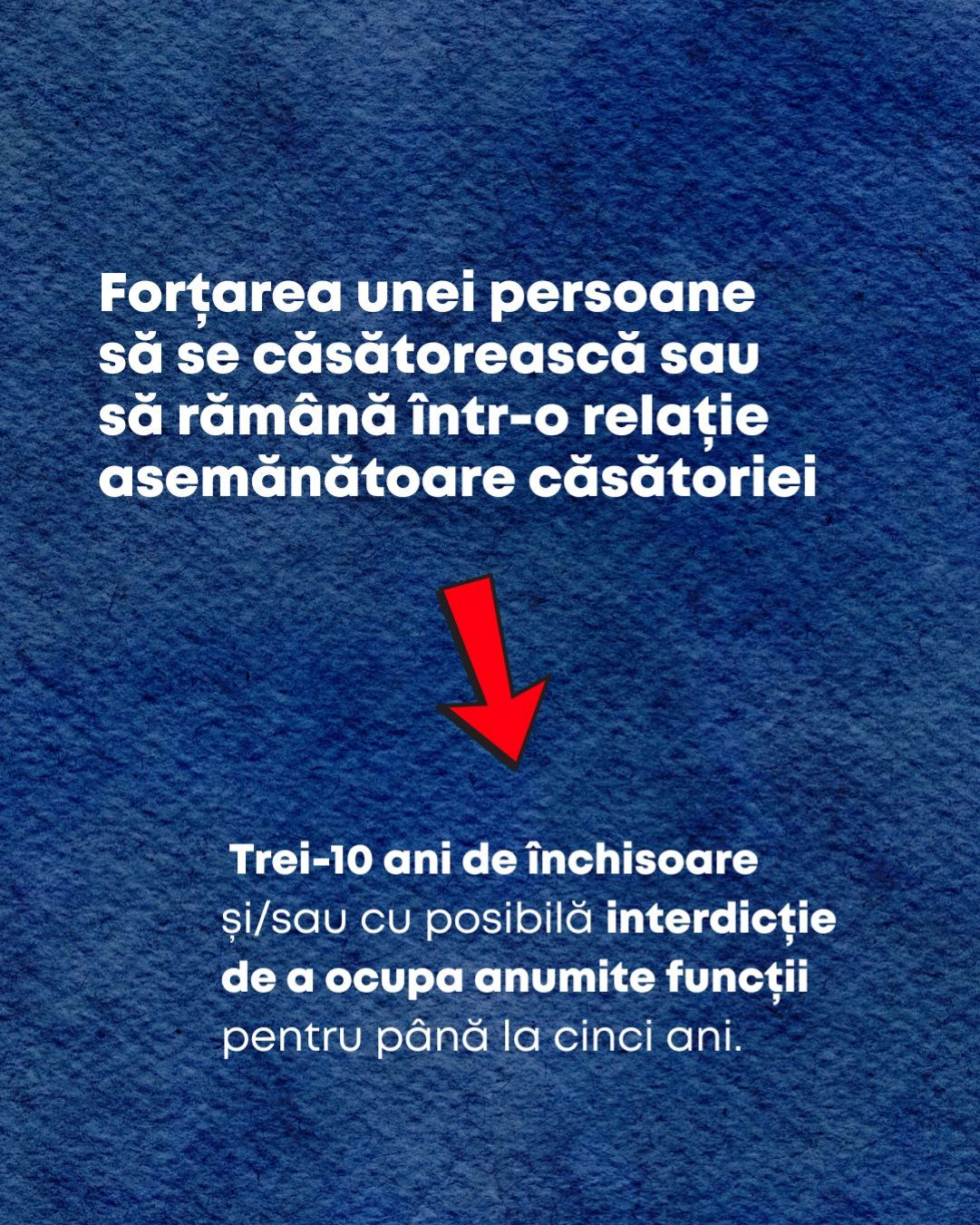 Cel de-al doilea este despre căsătoria forțată. Potrivit acestuia, forțarea unei persoane să se căsătorească sau să rămână într-o relație asemănătoare căsătoriei prin violență sau amenințare se va pedepsi cu trei-10 ani de închisoare și/sau cu posibilă interdicție de a ocupa anumite funcții pentru până la cinci ani. Dacă victima este minoră, pedeapsa va crește la cinci-12 ani de închisoare.