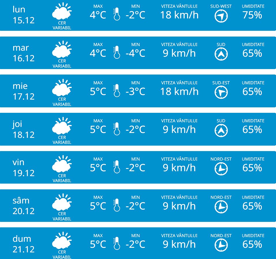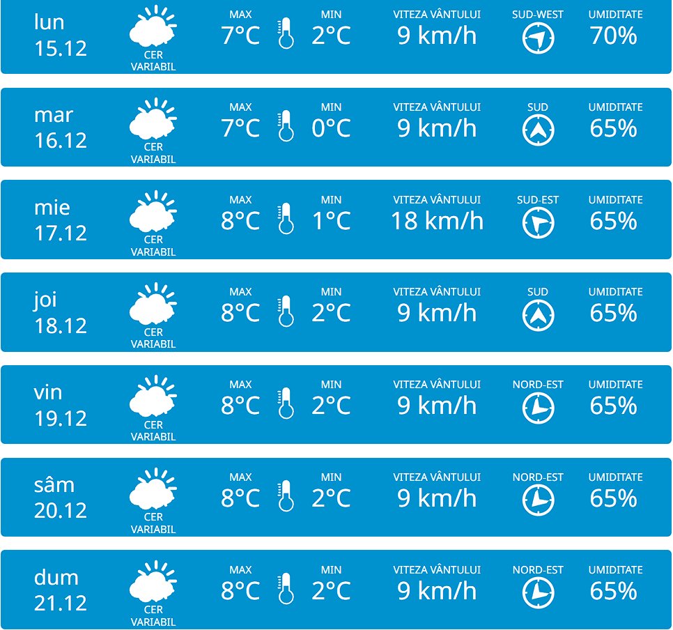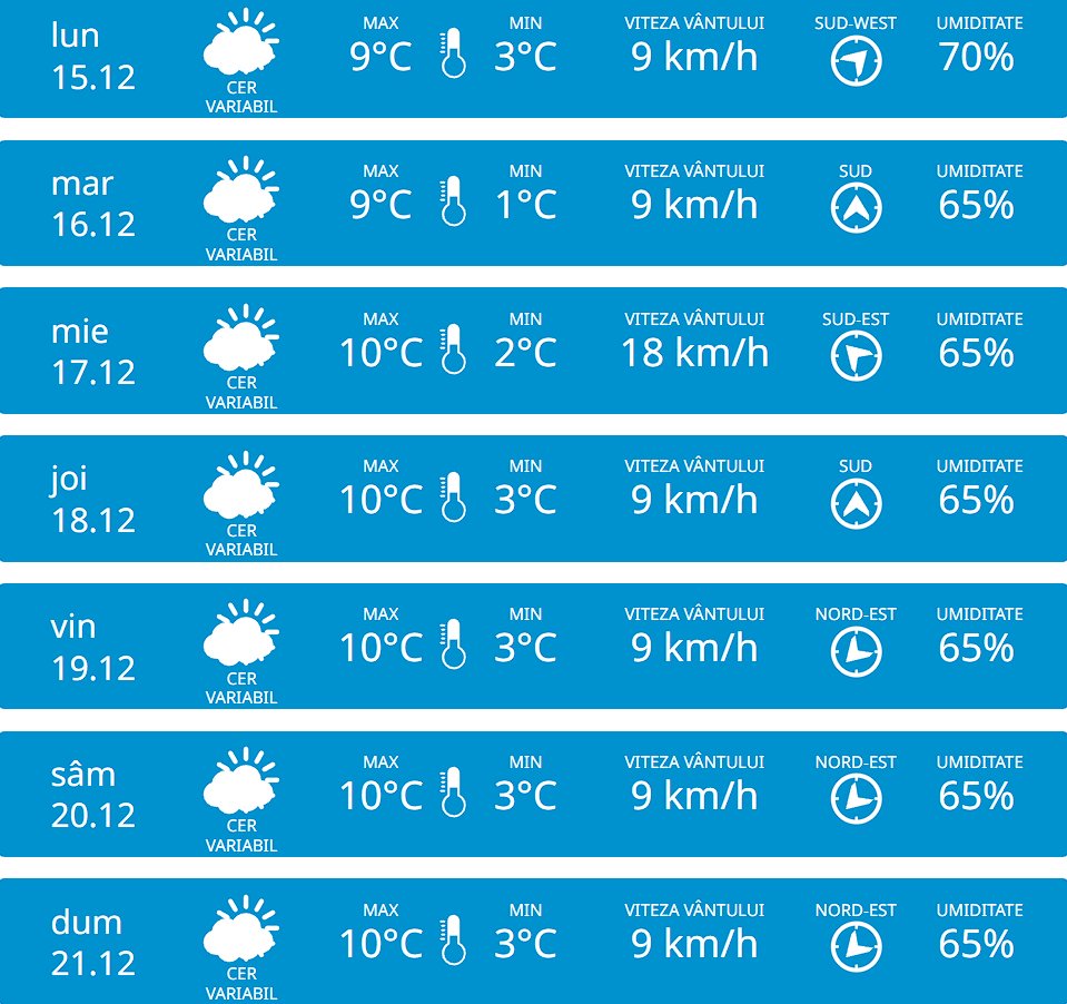 La Chișinău, maximele vor ajunge la 8 °C, iar umiditatea va depăși 65 %.