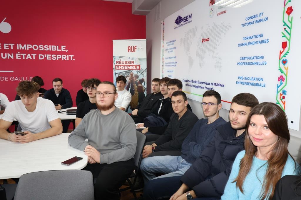 Evenimentul a reunit comunitatea francofonă activă a universității noastre – studenți și cadre didactice de la toate facultățile ASEM, preponderent de la Facultatea REI, interesați de leadership, management de proiect și perspective profesionale dincolo de frontiere.
